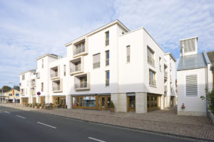 „Uns war es wichtig, dass sich der Neubau nicht als Fremdkörper im Ortskern darstellt, und daher haben wir die Architektur der alten Hofreiten aufgegriffen“, erläutert der Frankfurter Architekt Fritz Ludwig, der außerdem die Höhe der Gebäude mit bis zu fünf Stockwerken der Umgebung anpasste.