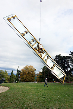 Die Isoliergläser verpackte sedak in speziell gefertigte Kisten, die den Maßen der Formate angepasst sind und den Sicherungsanforderungen mit Auflagen und Anlegepunkten entsprechen. Mit einem Tieflader wurden die Scheiben anschließend nach Genf gefahren. Der Einbau der Scheiben erfolgte mittels Kran-LKW und Saugbatterie und war im September 2016 abgeschlossen.