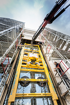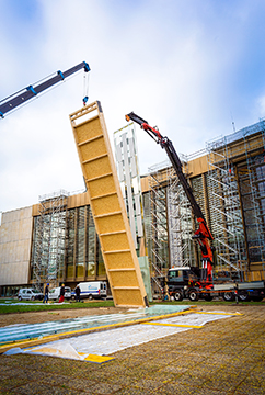 Die 13 Meter langen Scheiben werden an „ihrem Platz“ befestigt.