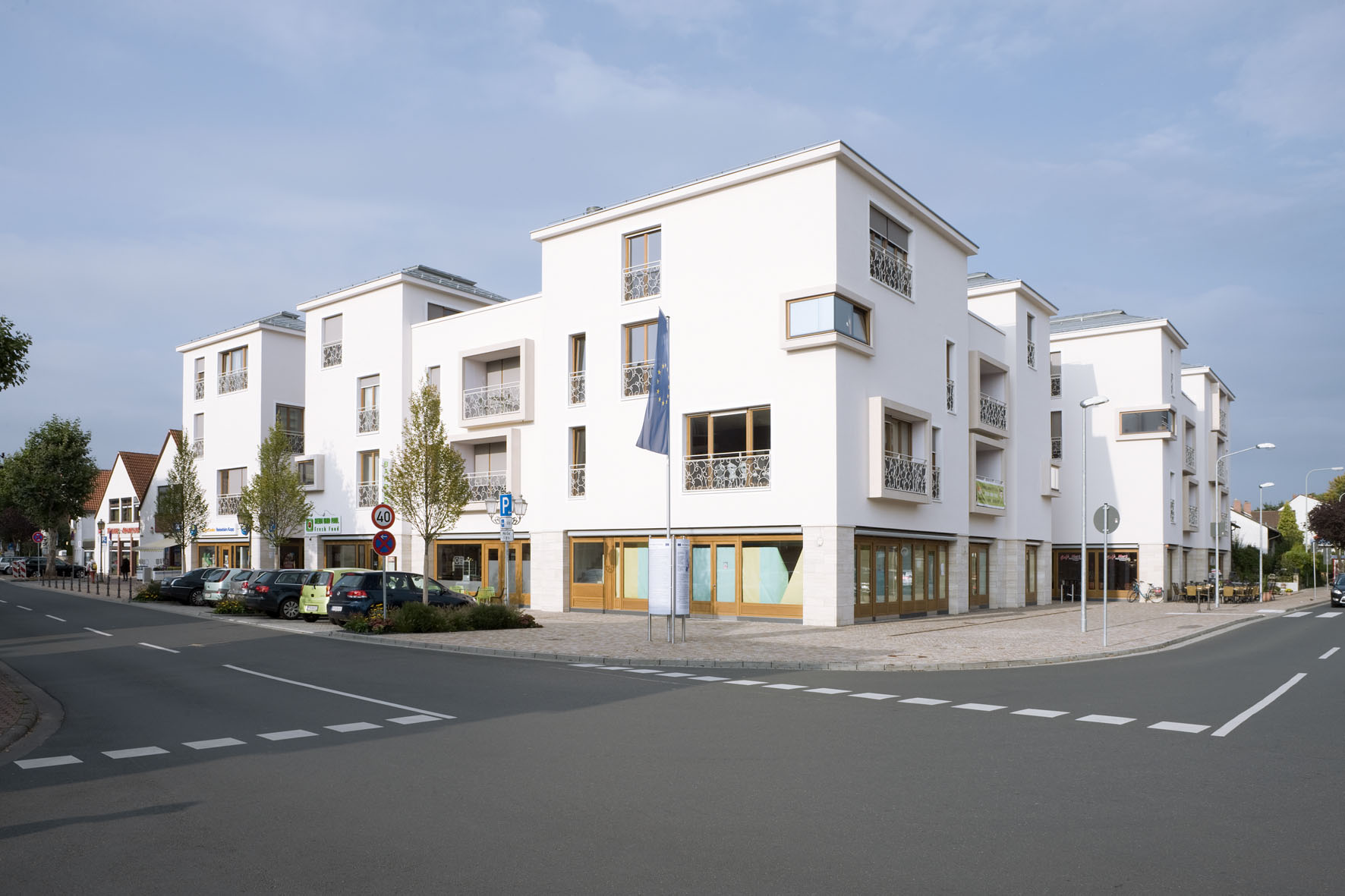 „Uns war es wichtig, dass sich der Neubau nicht als Fremdkörper im Ortskern darstellt, und daher haben wir die Architektur der alten Hofreiten aufgegriffen“, erläutert der Frankfurter Architekt Fritz Ludwig, der außerdem die Höhe der Gebäude mit bis zu fünf Stockwerken der Umgebung anpasste.