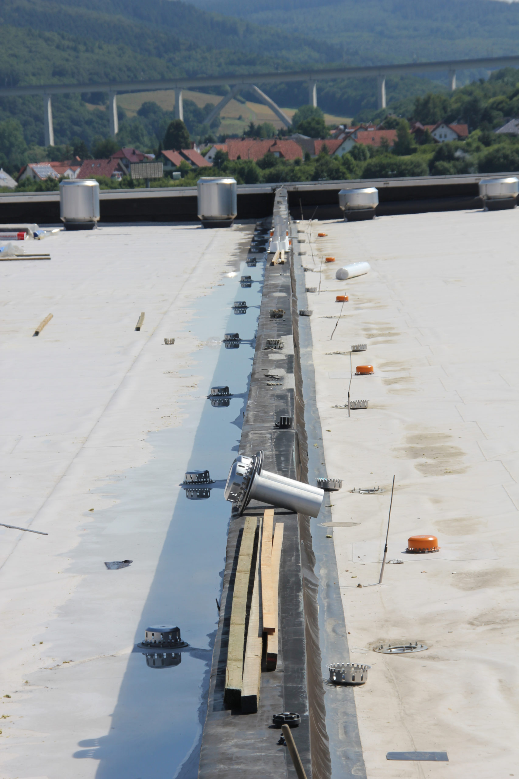 Die Lagerhalle von B. Braun in Melsungen erhielt eine neue Dachentwässerung.