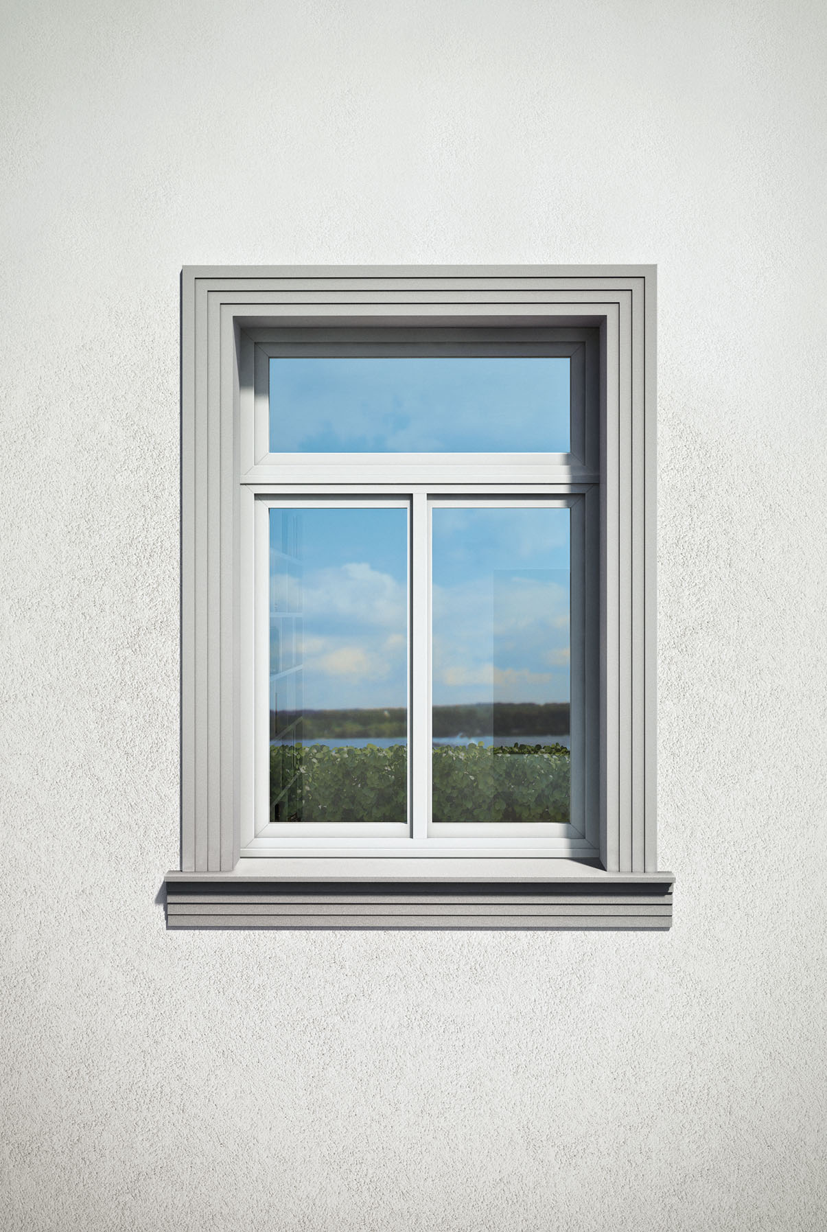 Die Tür- und Fensterprofile des StoDeco Frame-Sortiments gestalten die Fassade dreidimensional. Der mineralische Werkstoff Verofill ist einerseits kompakt und massiv wie Stein, andererseits sehr leicht (550 kg/m³) und sicher zu verarbeiten. Fünf Profiltypen (A bis E) für Fenster und Türen in zwei Ausführungsvarianten sorgen für viele Gestaltungsmöglichkeiten. „L-Frame“ mit durchlaufender Fensterbank sorgt für eine klassische Anmutung. Die vorgefertigte Kombination von Profil und Fensterbankabdeckung ist einfach und schnell montiert. Mit „O-Frame“ erhält die Fassade einen modernen Akzent. Stets gleiche Rahmenprofile betonen die Fassadenöffnung auf allen vier Seiten. In beiden Fällen entsteht ein hochwertiger Gesamteindruck, der sich gestalterisch vom Durchschnitt abhebt.