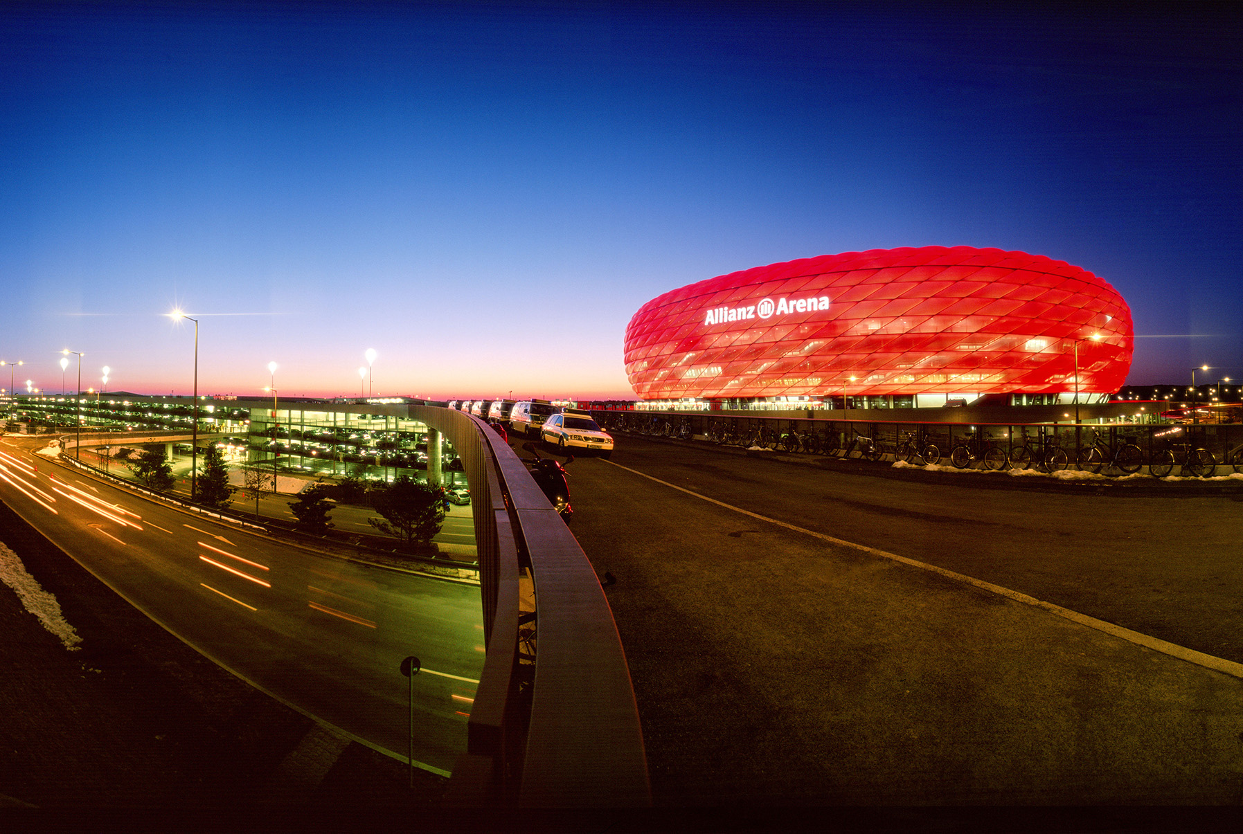 Die Allianz Arena wurde im Mai 2005 eröffnet und ist seitdem nicht nur Spielstätte für den Fußball, sondern dient ebenso als Veranstaltungslocation. Bei Bundesligaspielen bietet die Allianz Arena 75.000 Plätze. Ihre Fassade leuchtet zu verschiedensten Anlässen in unterschiedlichen Farben, was sie als architektonisches Wahrzeichen Münchens bekannt machte.