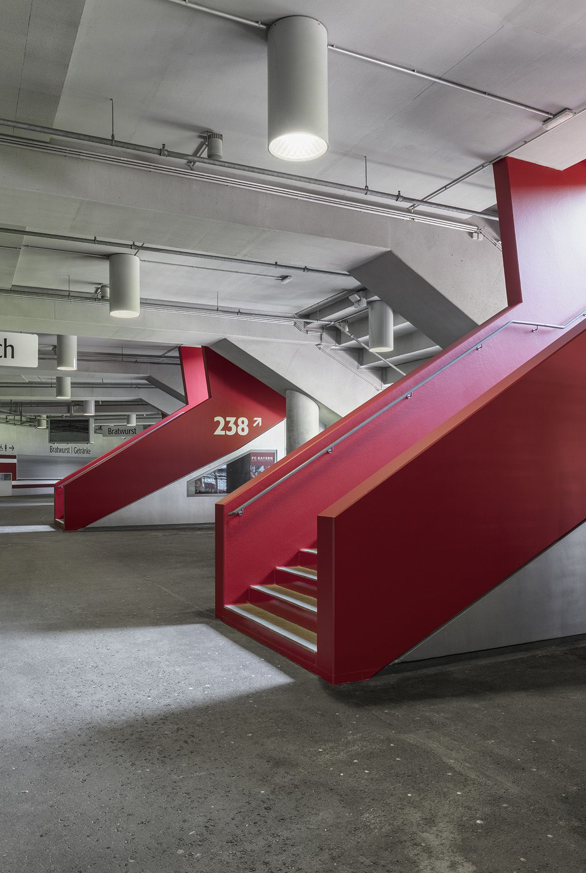 Im Sommer 2018 erhielt der Innenraum der Allianz Arena einen neuen farbigen Look. Die Seitenwände in den Blöcken sowie die Setzstufen der Treppen zwischen den Zuschauerrängen bekamen einen Anstrich in Rot, Weiß und Blau. Diese Bauteile bestehen hauptsächlich aus Stahlbeton. Deshalb kamen die StoCretec Beschichtungen StoCryl V 100 und StoCryl V 200 für die Wände und StoPox WL 100 für die Setzstufen zum Einsatz.