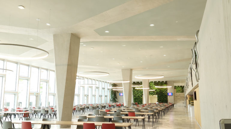 Objektreport: WHO-Zentrale, Genf Architektur-Akustik: Die neue WHO-Zentrale in Genf zeigt, das gutes Hören auch gut aussehen kann. Damit die Aufenthaltsqualität durch die gute Akustik unterstütz wird, sind im vom Büro Berrel Berrel Kräutler geplanten Verwaltungsbau akustisch wirksame Teilflächen in der Decke vorgesehen. Sie sind flächenbündig in die Betondecke integriert – wie Intarsien. Dafür wählten die […]