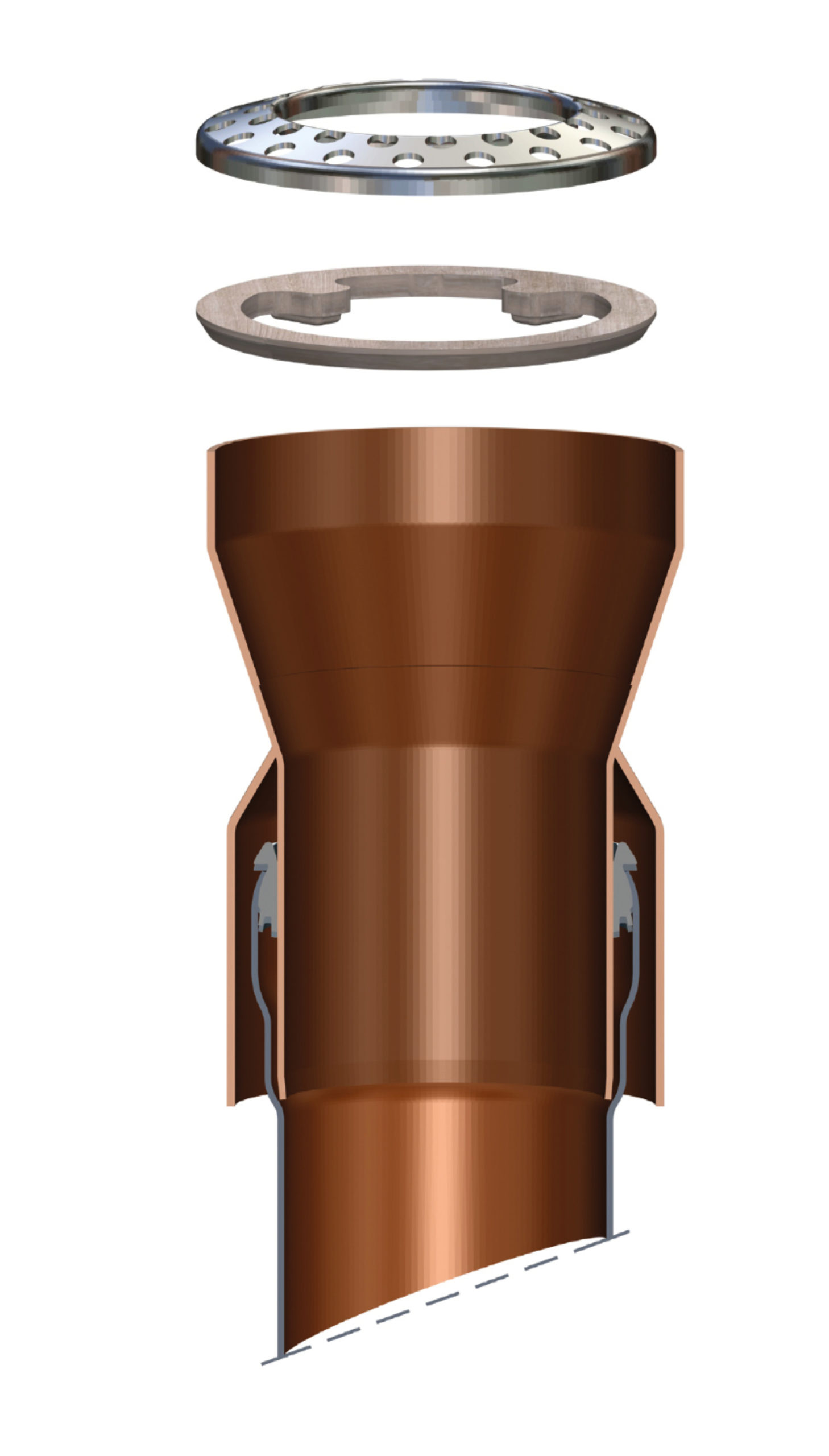 Die Serie IV überzeugt mit flexibel positionierbarem Aufnahmering anstatt fixen Haltenocken. Die Glocke nimmt die Steckmuffe nicht sichtbar auf.