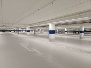 Helle Böden tragen dazu bei, dass in der Tiefgarage des „HafenMarkt“ eine positive Atmosphäre herrscht.