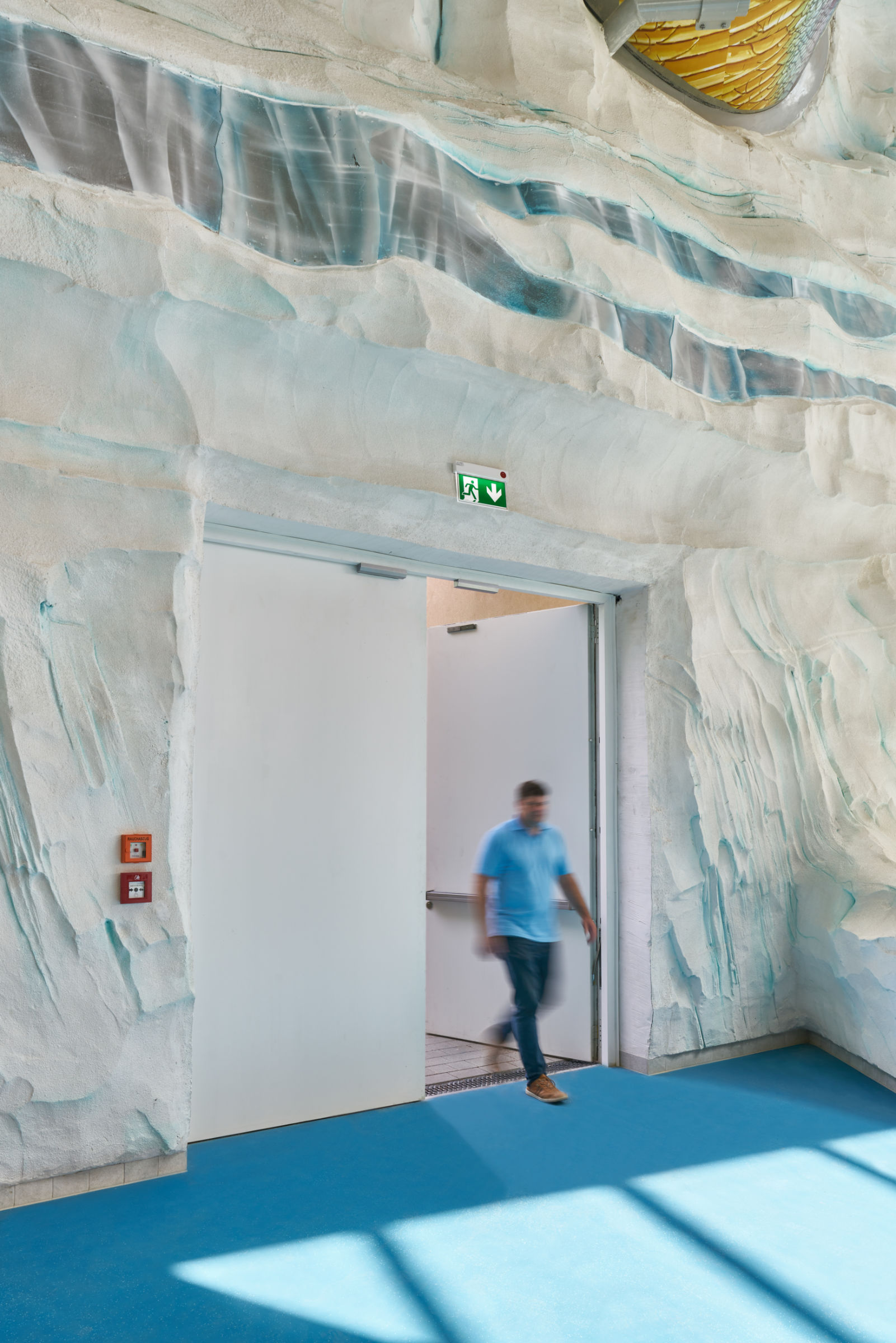 Im Anstehbereich zu den „Snorri-Touren“ kommen T30-Türen mit Feststellanlage zum Einsatz. Im Tagesbetrieb stehen sie offen und schließen nur im Falle eines Brandes.