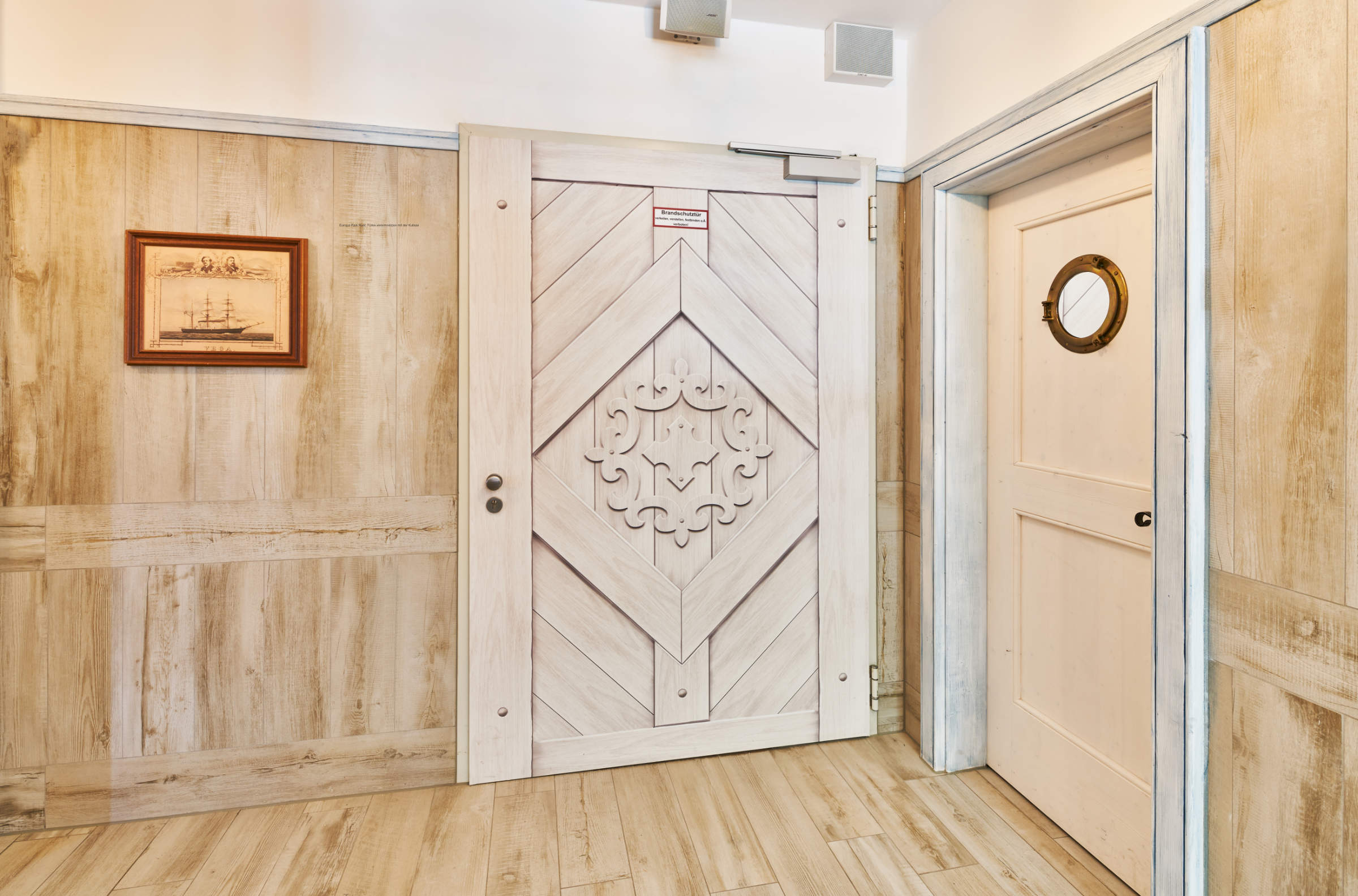 Ob bemalt oder foliert: die kunstvollen Gestaltungen lassen die Türen Teil der Erlebniswelt werden – hier im Themenbereich Skandinavien.