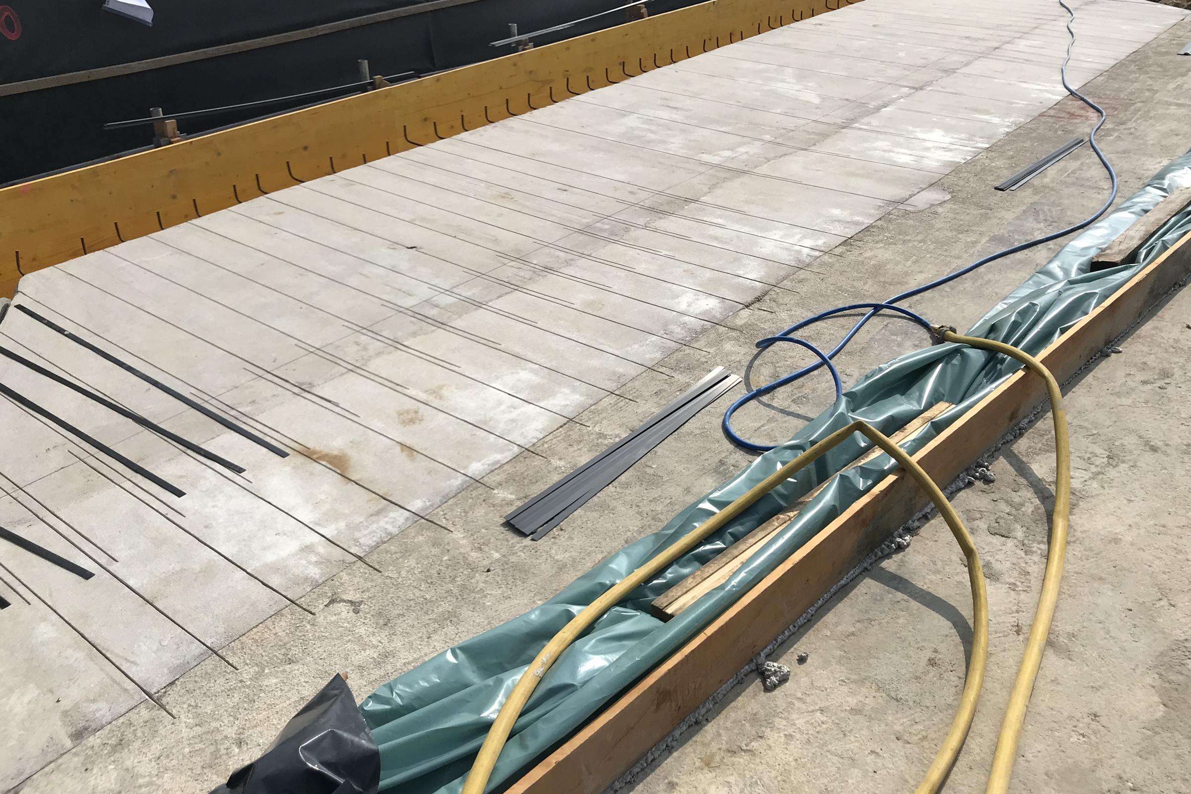 Der Kragarm wird mit 30 mm tiefen Schlitzen versehen. In diese werden die CFK Lamellen geklebt.