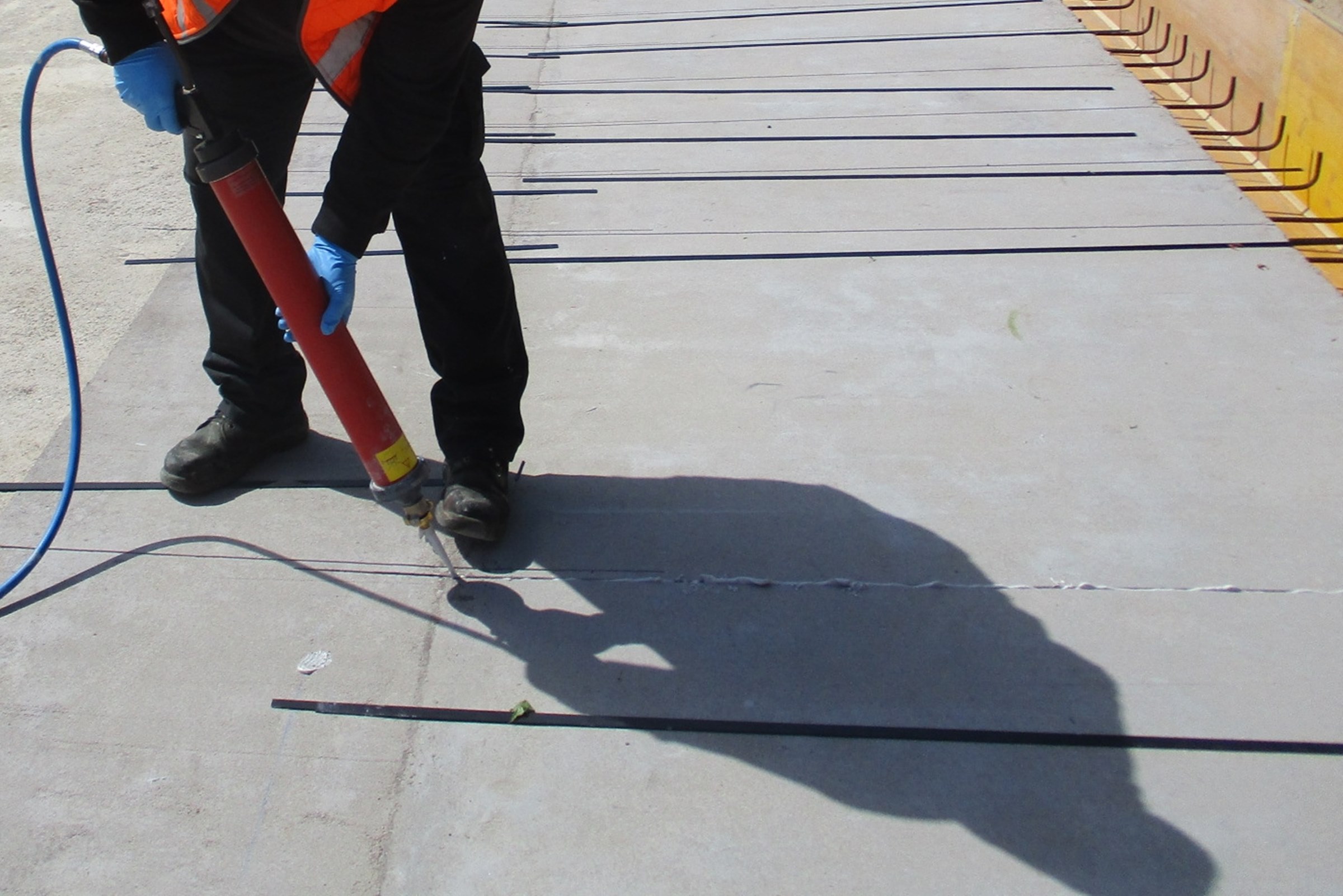 Der Kleber StoPox SK 41 wird mit einer Pistole in die Schlitze eingebracht.