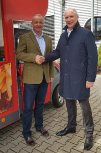 Hanno-Geschäftsführer Günter Krohn (r.) beglückwünschte Frank Bublitz zu seinem 40-jährigen Dienstjubiläum.