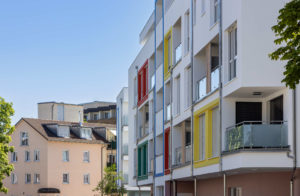 Im zweiten Gebäude ist die Nutzung genauso stark durchmischt: Im Erdgeschoss logiert eine Intensivpflege-Wohngemeinschaft. Hinzu kommen 23 Eigentumswohnungen, drei davon wiederum in der Kategorie „Penthouse“. Auch die Wohnungen selbst weisen ein breites Spektrum an Größen und Grundrissen auf – ein weiteres Element für einen bunten Nutzer-Mix. Beide Häuser verfügen über Tiefgarage und Aufzug, wodurch die Wohnungen barrierefrei erreichbar sind.