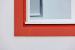 Um die Fenster sind StoDeco Fassadenelemente installiert. Diese Leisten aus massivem, mineralischem Verolith kommen vorkonfektioniert auf die Baustelle und lassen sich so einfach in das Dämmsystem integrieren.