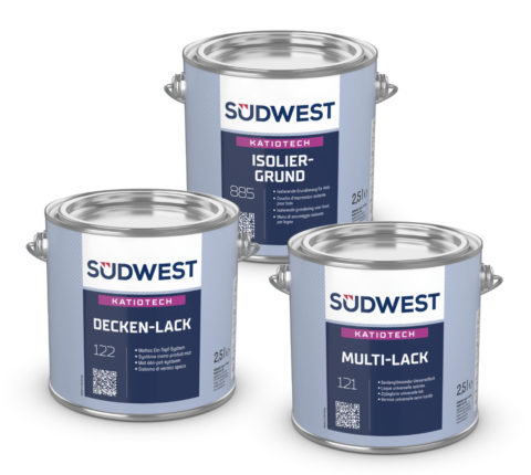 Zwei neue kationische Lacke erweitern jetzt das Spektrum der Südwest KatioTech-Lacke: Der matte KatioTech Decken-Lack und der seidenglänzende KatioTech Multi-Lack.
