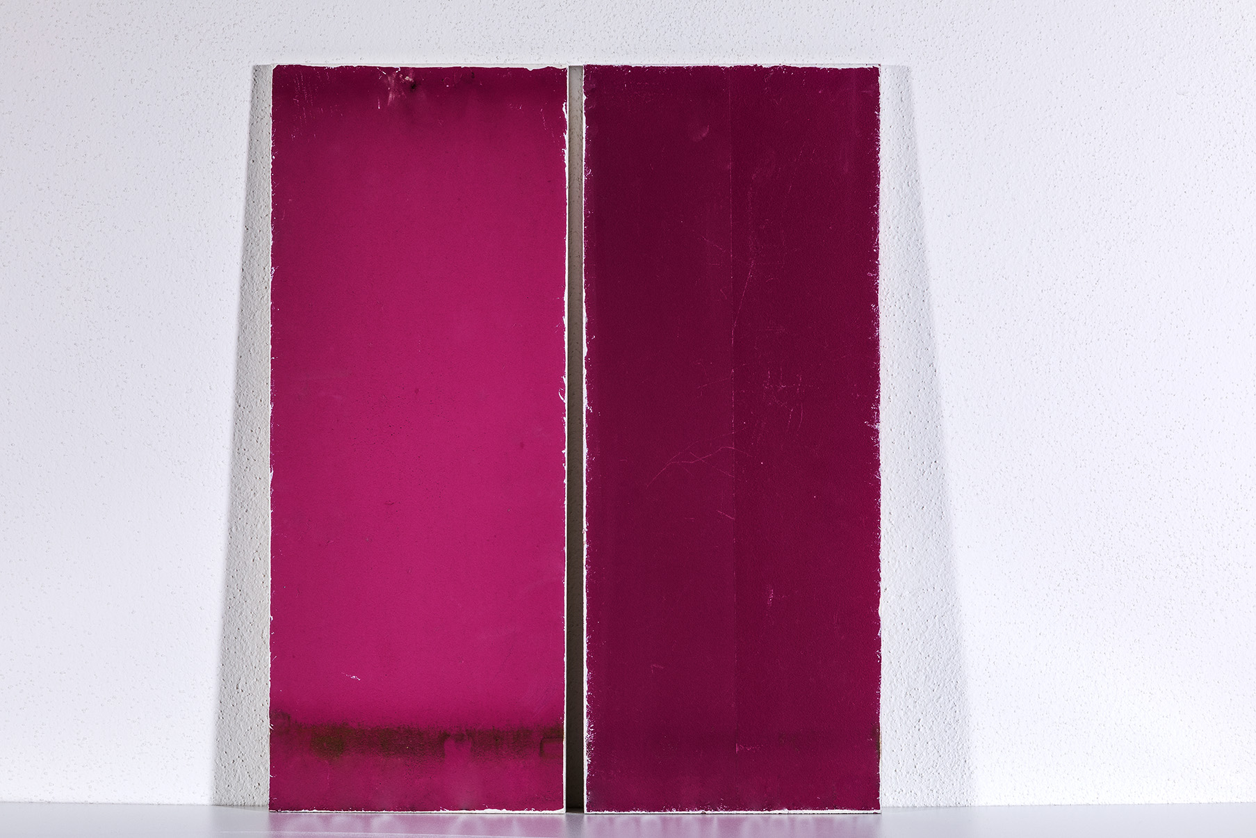 Der Freibewitterungs-Test zeigt den Unterschied: Die Fläche mit StoColor Dryonic S ist nach wie vor in ihrem ursprünglichen Farbton erhalten, die Vergleichsfläche ist unter dem Einfluss des Sonnenlichts bereits ausgebleicht.