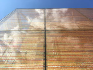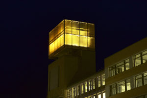 Unzählige Definitionen verschmolzen die Künstler zu einem schier überwältigenden Gesamtmix. Worte und Buchstaben verschiedener Größen und Sprachen verschwimmen, scheinbar übergangslos greifen sie ineinander und bilden eine massive Wörterfront, die aus der Ferne wie eine schillernde Farbmasse wirkt, aufgrund des präzisen Digitaldrucks aus der Nähe aber gut lesbar bleibt. An die Farblichkeit stellten die Künstler hohe Ansprüche: Mit genauen Vorstellungen über die richtigen Pantone-Farbtöne und deren detaillierten Abstufungen wurden in enger Zusammenarbeit mit sedak anhand von mehreren A3-Mustergläsern die richtigen Nuancen bestimmt. Während der „Link“ von Indigo- und Grautönen bestimmt wird, das starke Assoziationen zur Wissenschaft weckt, erinnert die Turmspitze an einen Leuchtturm und strahlt, nachts beleuchtet, safranorange in die Ferne. „Die Künstler waren mit Begeisterung in den technischen Prozess eingebunden und haben dabei auch Wechselwirkungen für ihr Werk mitgenommen. Wir teilen die Liebe zur Perfektion – deswegen konnte ein so aussagekräftiges Kunstwerk entstehen“, sagt Scheuer.