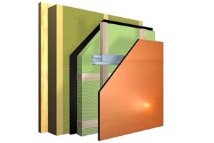 Zu den Systemvarianten, die jetzt auf der DACH + HOLZ gezeigt werden, gehören werkseitig vormontierte Paneele: Auf das Grundmodul (die Blähglas-Platte) wird die stilprägende Außenschicht aufgebracht.