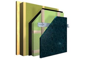 Systemschnitte: Das vorgehängte hinterlüftete Fassadendämmsystem StoVentec bringt neue Oberflächen für den Holzbau – zum Beispiel Glas oder Naturstein.Foto: Sto AG, Stühlingen