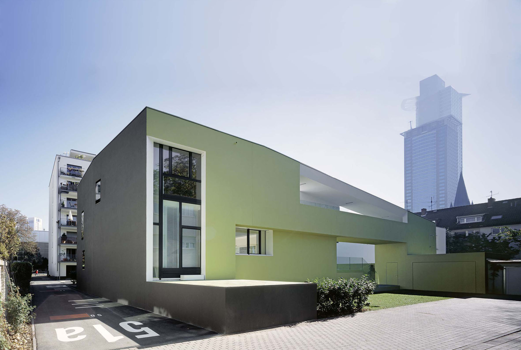 In einem dicht besiedelten Stadtviertel in Frankfurt am Main entstand auf den Fundamenten eines Gründerzeit-Kellergeschosses die Umwandlung des darauf ruhenden 50er-Jahre Gebäudes zu einem zeitgemäßen Einfamilienhaus. Nicht nur das Energie- und Nachhaltigkeitskonzept ist hervorzuheben, auch die intelligente Lösung, mit einer geschickten Mauerführung eine grüne Oase inmitten des Großstadttrubels zu schaffen. In Verbindung mit der Weiternutzung der vorhandenen Baumaterialien stellt das Projekt für Tobias Krug „ein äußerst gelungenes Gesamtprojekt dar.“