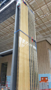 - Holzfurnier gibt es nur bis drei Meter Länge – es kamen also horizontale Stöße hinzu, da die Scheiben sieben Meter hoch sind.