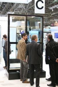 Zentrales Thema der Sonderschau „glass technology live“ (Halle 11 / C28) waren neuartige Anwendungen wie zukunftsweisende Fassadenkonstruktionen, die als Mock-ups oder großformatige Modelle gezeigt wurden. Hier präsentierte EControl seine dimmbare Verglasung im Rahmen einer Projektstudie erstmals als großformatige Structural Glazing Fassade.