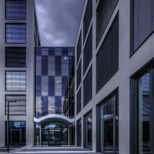 Im Atrium mit seiner 16 Meter hohen Glasfassade sorgen 85 m² ECONTROL smart 45/8 für eine Verschattung im Glas, freie Sicht bei schönstem Wetter und ein angenehmes Wohlfühlklima im Foyer. Mit ihren elektrochromen Eigenschaften wirken die Gläser der Aufheizung des Atriums entgegen und erhalten die Transparenz. So beträgt der g-Wert (Gesamtenergiedurchlassgrad) des dimmbaren Dreifach-Isolierglases ECONTROL 45/8 auf stärkster Dimmstufe nur acht Prozent – das senkt auch den Klimatisierungsbedarf. Weil sich die Scheiben abgestuft steuern lassen, passt der Blendschutz immer optimal zur aktuellen Witterung: Ist es draußen dämmrig, lassen die Scheiben entsprechend viel Tageslicht nach innen. Außenliegender Sonnenschutz ist mit diesem Glas überflüssig. „Wo sonst Raffstoren die Sicht nach draußen versperren, lässt unser Glas die Transparenz bestehen“, erklärt EControl Geschäftsführer Tobias John.