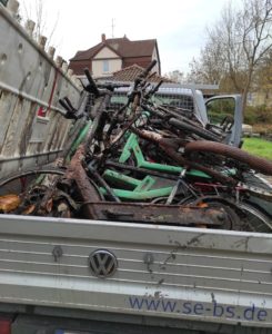 Braunschweig, 23. März 2022. Elektroroller sind längst auch in Braunschweig Teil des Stadtbilds. Anlässlich des Stadtputztages – den die Stadtentwässerung Braunschweig GmbH (SE|BS) seit Jahren als Sponsor unterstützt –, möchte das Unternehmen auf ein neues Problem aufmerksam machen: E-Scooter in der Oker und anderen Fließgewässern gefährden unsere Umwelt. “Batterien und Akkus gehören nicht in den Hausmüll und schon gar nicht in Gewässer. Durch undichte Akkus drohen fatale Umweltschäden”, sagt Jörg Walther, Leiter des Gewässerdienstes der SE|BS. Damit die Giftstoffe aus den Batterien nicht in den Wasserkreislauf geraten, bergen die Spezialisten die Roller aus Bächen und Flüssen – nicht nur am Stadtputztag.