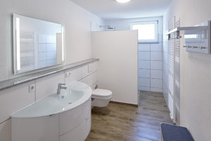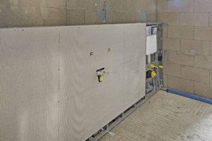 Veroboard Rapid ist feuchteunempfindlich. Damit ist die Platte auch ideal für die Montage im Bad. Die Sanitäreinrichtung in Volkesfeld erfolgte als Vorwand-Installation.