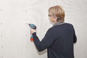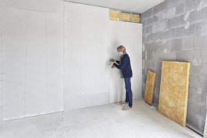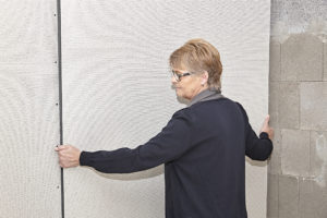 „Ein-Frau-Montage“: Blähglasplatten sind besonders leicht und so auch für eine Einzelperson einfach zu montieren. Margret Müller übernahm die Montage der Platten auf die Metallständer-Konstruktion, die mit Mineralwolle gedämmt ist.