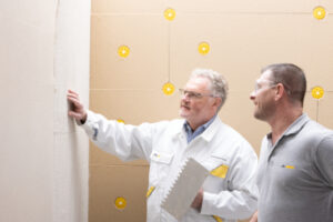 Mit dem zementfreien Mörtel „StoLevell AimS“ können EPS-, Mineralwolle- und Holzweichfaser-Dämmplatten geklebt werden. So lässt sich der CO2-Fußabdruck der eingesetzten Baustoffe senken – für den Klebemörtel etwa um die Hälfte.