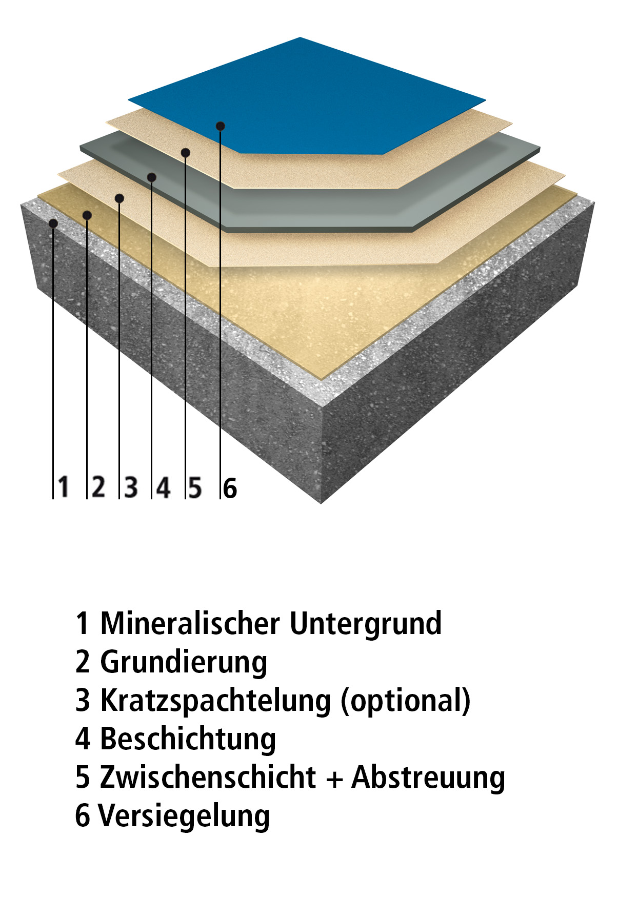 Systemaufbau StoFloor Industry Elastic WHG Deck 100, rutschhemmender Aufbau