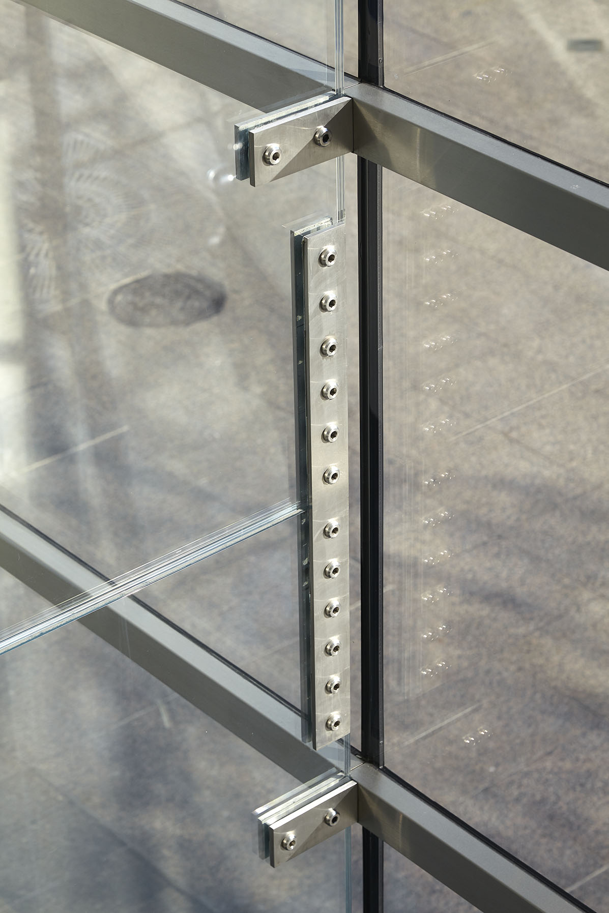 Dank der Glassschwerter im Großformat kommen die Fassadenelemente mit wenigen Verbindungsstücken aus. Dies ermöglicht die hohe Transparenz der Gebäudehülle.