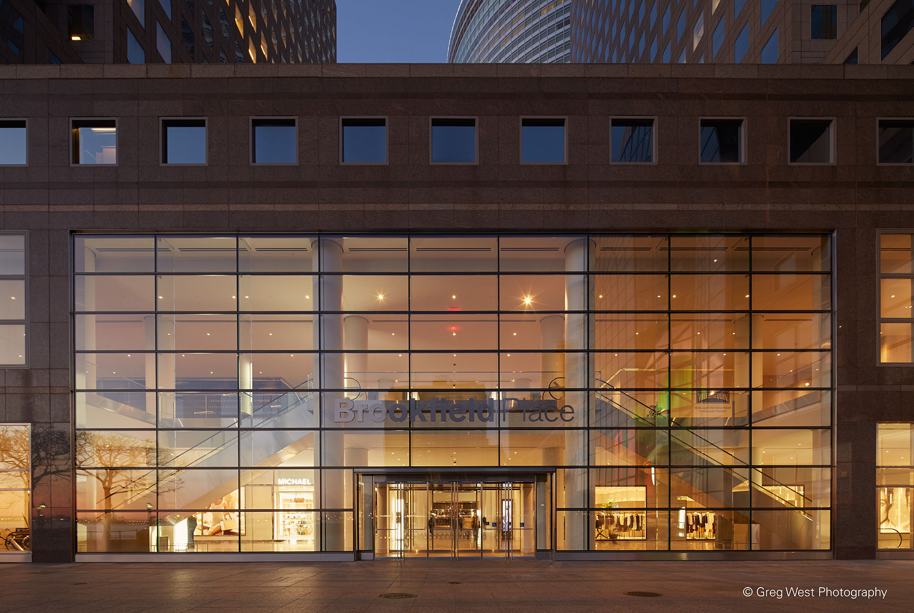 Bei den Anschlägen vom 11. September 2001 wurde der Gebäudekomplex des ehemaligen World Financial Centers schwer beschädigt. Besonders die unteren Stockwerke der Türme zwei und drei sowie der dazwischenliegende, glasüberdachte Wintergarten wurden nahezu komplett zerstört. In dem bestehenden Gebäude zwischen dem Yachthafen (Marina) am Hudson River und der Vesey Street entstand im Zuge des Wiederaufbaus die Shopping-Mall „Brookfield Place“ (bis 2014 World Financial Center). Sie beherbergt High-End-Mode-Shops und exquisite Restaurants. Außerdem bietet die Mall Raum für eine Vielzahl kultureller Events, beispielsweise finden auf dem Dach regelmäßig Filmfestivals und Konzerte statt.