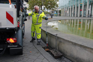 Neben den regelmäßigen Kontrollen kommt es auch immer wieder zu außerplanmäßigen Einsätzen – beispielsweise haben die SE|BS-Trupps auch schon Entenküken gerettet, die beim Überqueren der Straße in die Abläufe gefallen waren. „Klassiker“ ist der Schlüsselbund, den das SE|BS-Team bergen muss – und der dank Sinkkasten nicht in der Kanalisation verschwindet.