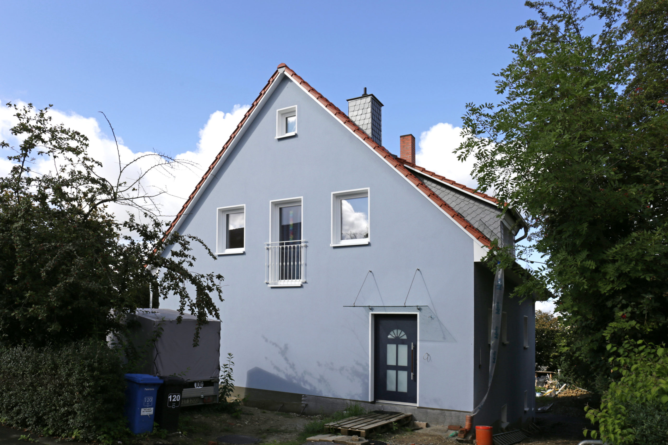 Altbau in Neu: Das Einfamilienhaus nach der Sanierung. Gut gedämmt ist der Energiebedarf niedrig – und mit den nachhaltigen Baustoffen schonte der Bauherr die Umwelt schon während der Bauarbeiten.