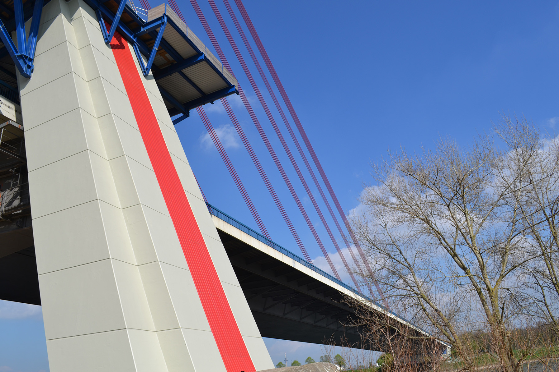 Fleher Brücke: Stahlbeton-Pylon erhält Schutzbeschichtung gegen Wasser und Schadstoffe