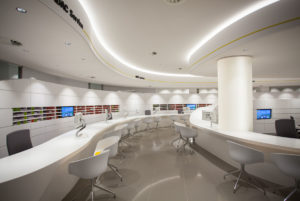 Das Produktprogramm StoSilent bietet darum ein umfassendes Sortiment an schallabsorbierenden Produkten für vier zentrale Systemvarianten. Neben dem technischen Nutzen steht immer der gestalterische Aspekt im Vordergrund. Hochwertige Schlussbeschichtungen ermöglichen eine architektonische Gestaltung ohne funktionale, sichtbare Einschränkungen. Es gilt, das architektonische Ideal der weißen, fugenlosen, ebenen Fläche mit den technischen Anforderungen der Akustik optimal zu verbinden. Und soll das „weiße Ideal“ einmal bewusst durchbrochen werden, stehen bei den Sto-Akustiksystemen bis zu 450 Farbtöne zur Verfügung.