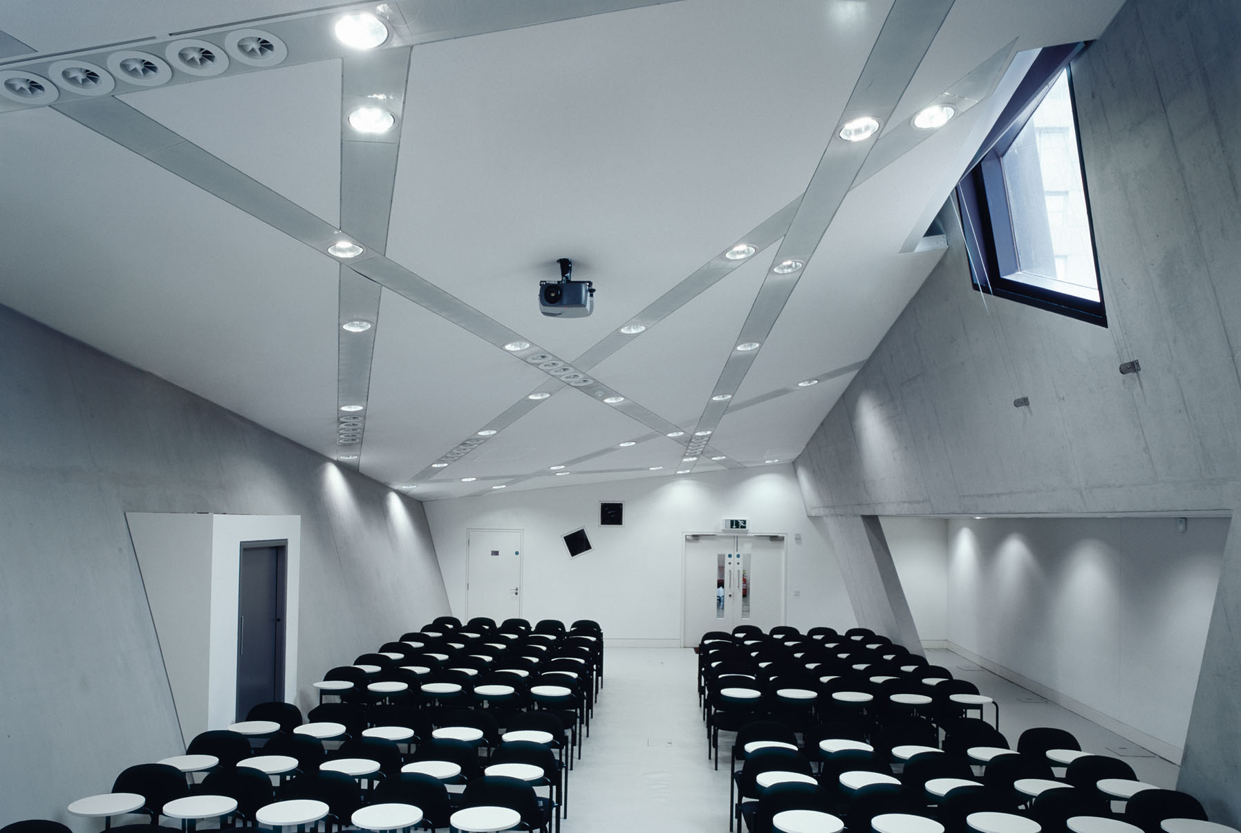 Das Produktprogramm StoSilent bietet darum ein umfassendes Sortiment an schallabsorbierenden Produkten für vier zentrale Systemvarianten. Neben dem technischen Nutzen steht immer der gestalterische Aspekt im Vordergrund. Hochwertige Schlussbeschichtungen ermöglichen eine architektonische Gestaltung ohne funktionale, sichtbare Einschränkungen. Es gilt, das architektonische Ideal der weißen, fugenlosen, ebenen Fläche mit den technischen Anforderungen der Akustik optimal zu verbinden. Und soll das „weiße Ideal“ einmal bewusst durchbrochen werden, stehen bei den Sto-Akustiksystemen bis zu 450 Farbtöne zur Verfügung.