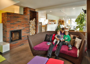 Zunächst definierte die junge Familie, wie viel Wohnraum sie benötigt und weitere Details. Ganz klar war der Wunsch nach zwei separaten Kinderzimmern, jedes Kind sollte sein eigenes Reich bekommen. Außerdem wollten die Bauherren in einer großzügigen, offenen Wohnlandschaft die Möglichkeit schaffen, auch größere Familienfeste mit bis zu 20 Personen zu feiern. Auch ein effizienter Heiz-Kamin mit sichtbarer Feuerstelle stand auf der Wunschliste ganz oben.