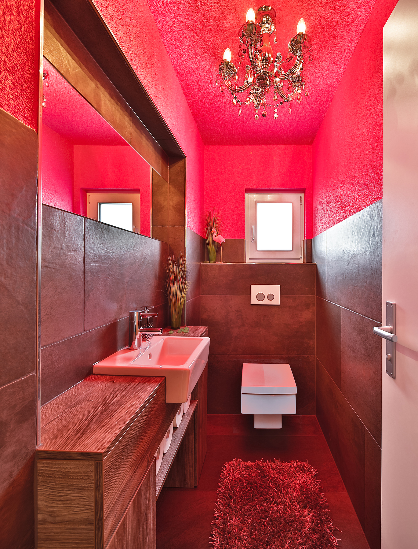 Etwas aufwändiger wurde der Ausbau durch eine Vielzahl an Ecken und Kanten. „Wir sind keine Freunde herkömmlicher Einbaumöbel. Deshalb war uns der Einbau von Nischen und Durchblicken sehr wichtig, um unserer Wohnung ein individuelles Gesicht zu geben und zugleich praktische Ablagen zu kreieren, wie in Bad und Dusche für Duschgel und Shampoo oder in der Garderobe für Telefon und Notizzettel.“ In der kleinen, schmalen Toilette wurde durch die Versenkung des Spiegels und des Waschtisches weitere zehn Zentimeter Raum gewonnen. All diese architektonischen Grundideen führten zu viel Zusatzarbeit. Aber mit der einfachen Handhabung von VeroBoard Rapid gelang dies schneller als gedacht. „Selbst unser langjähriger und erfahrener Zimmermann war begeistert, dass es so schnell und einfach ging. Wir sind uns einig, dass wir die Platte jederzeit wieder einsetzen werden“, lautet das Resümee des Familienvaters.