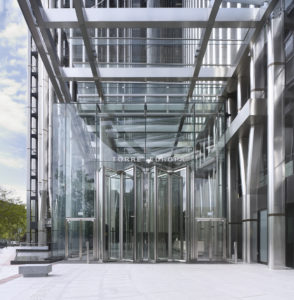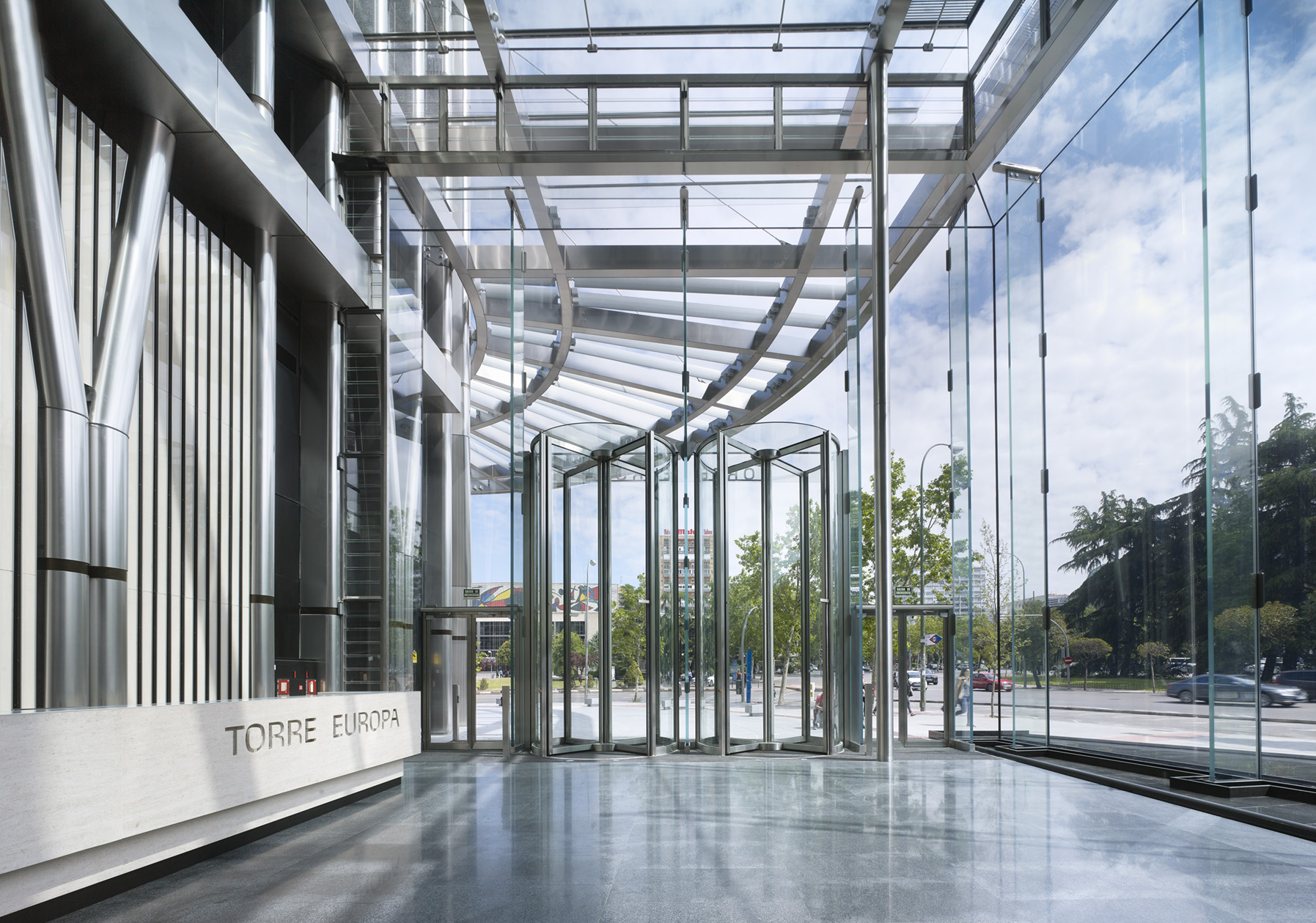 Eingangsbereich in den Büroturm „Torre Europa“.
