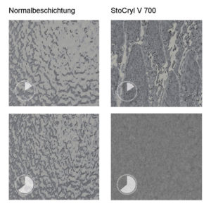 Auch die Schutzanstriche StoCryl V 100 und StoCryl V 200 vermindern die Schadstoff- und Wasseraufnahme in den Beton. Die vielseitig tönbaren Acrylate sind ebenfalls CO2-dicht und wasserdampfdurchlässig.
