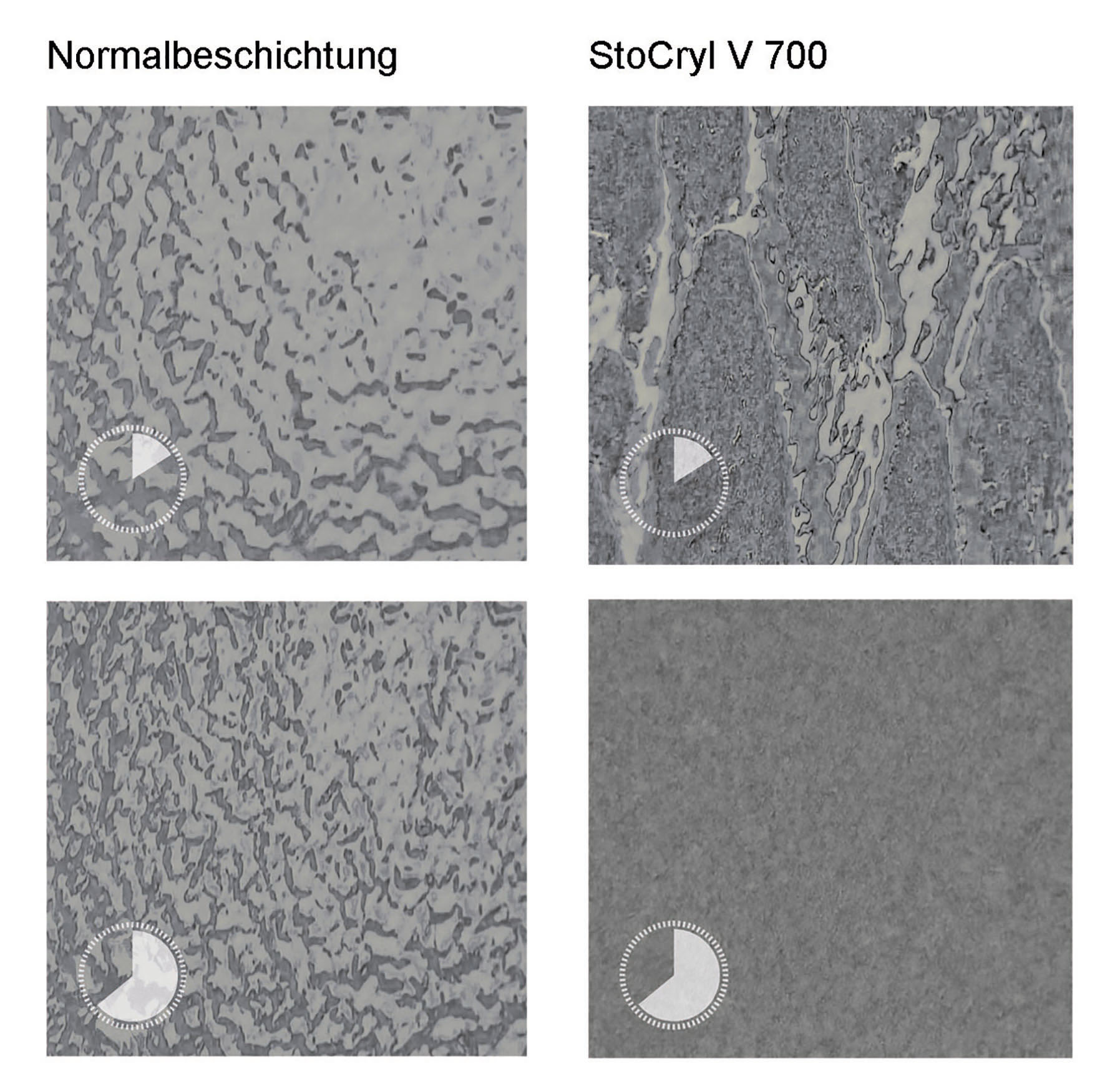 Der bionische Schutzanstrich StoCryl V 700 hilft mit seinem hydrophob-hydrophilem Prinzip dabei, Betonflächen trocken zu halten und vor Schäden zu schützen. Die Entwickler schauten sich die Technik vom Nebeltrinker-Käfer ab: Zahlreiche mikroskopisch kleine Kuppen auf seinem Panzer sorgen dafür, dass Luftfeuchte kondensiert. Bei der Applikation von StoCryl V 700 bildet sich mittels einer ausgeklügelten Bindemittel-Füllstoff-Architektur eine dauerhafte Mikrostruktur auf der Oberfläche. Diese Struktur sorgt dafür, dass Wasser sehr schnell abfließt und die Oberfläche in kurzer Zeit trocknet. Die Folgen von Feuchte-Belastung werden deutlich reduziert. Zudem wirkt der Anstrich CO2-bremsend und ist wasserdampfdiffusionsfähig. Mit einer hohen Farbtonvielfalt eröffnet der Betonschutz unzählige Gestaltungsmöglichkeiten für eine attraktive Fassade.