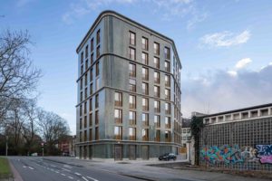 Neubau mit historischem Bezug: Das „Grüne Haus“ liegt am Standort des ehemaligen „Hohentor“, dem Eingang zum Quartier in Bremens Süden.