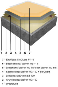 Systemaufbau des elektrisch leitfähigen Bodensystems StoFloor ESD WB 113.