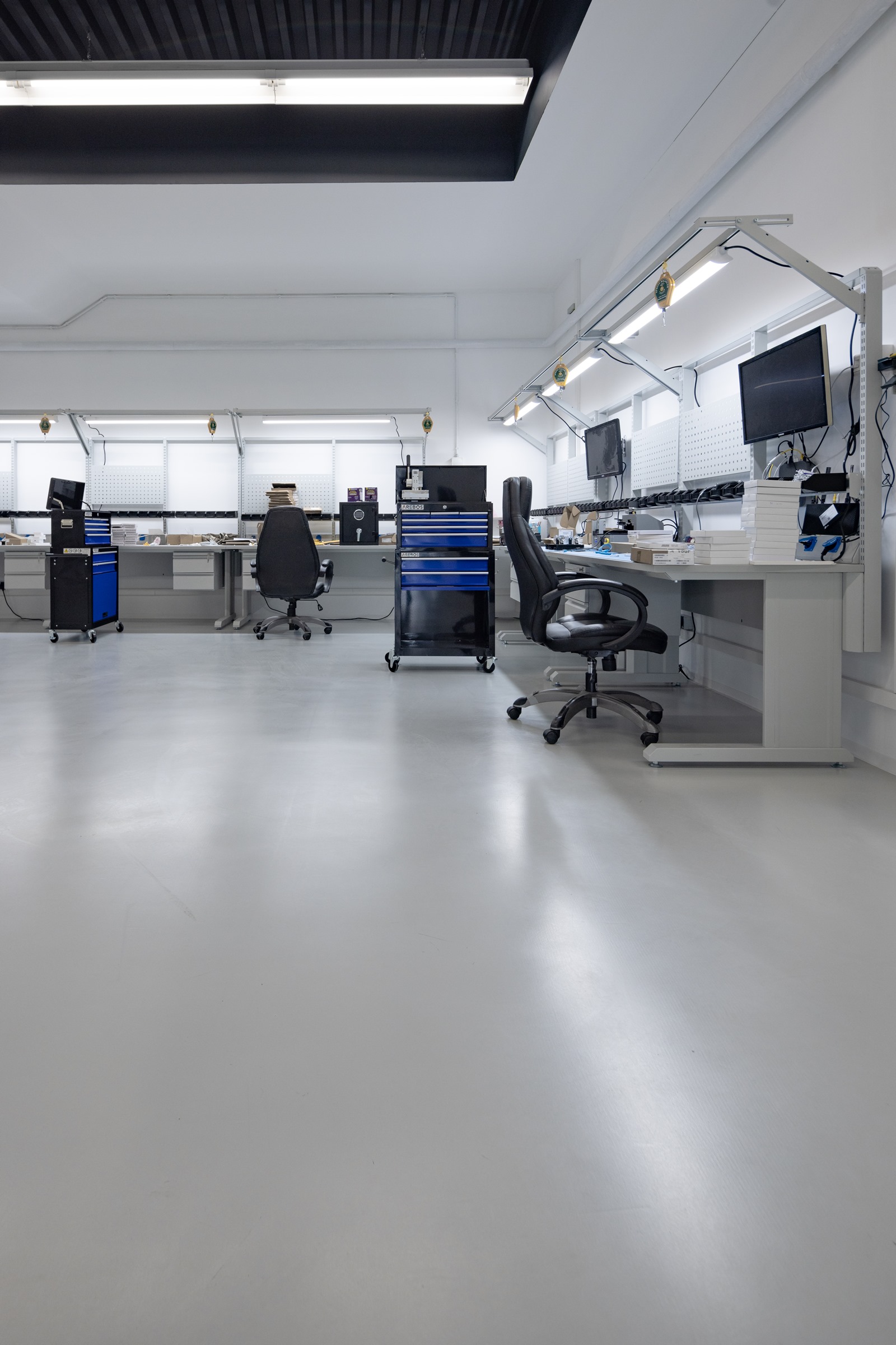 Seidenmatt, faserfrei, homogen: Der ESD-Boden von StoCretec überzeugt auch mit seiner optisch attraktiven Oberfläche.