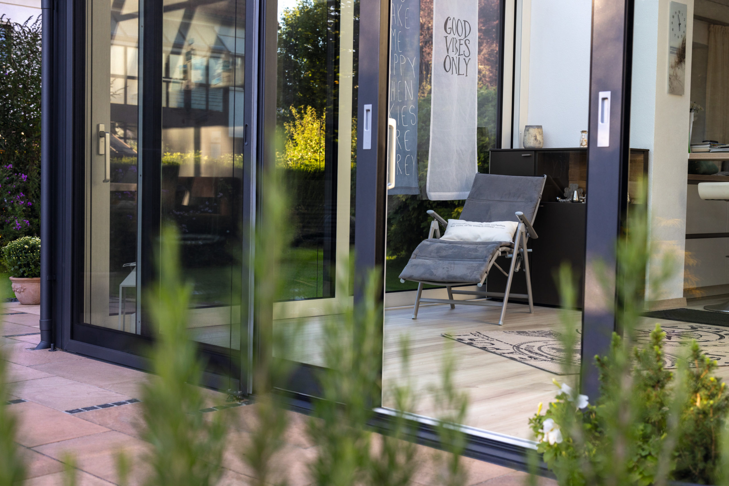 Auch gerahmte Schiebetüren überzeugen mit leichtgängigem Betrieb.