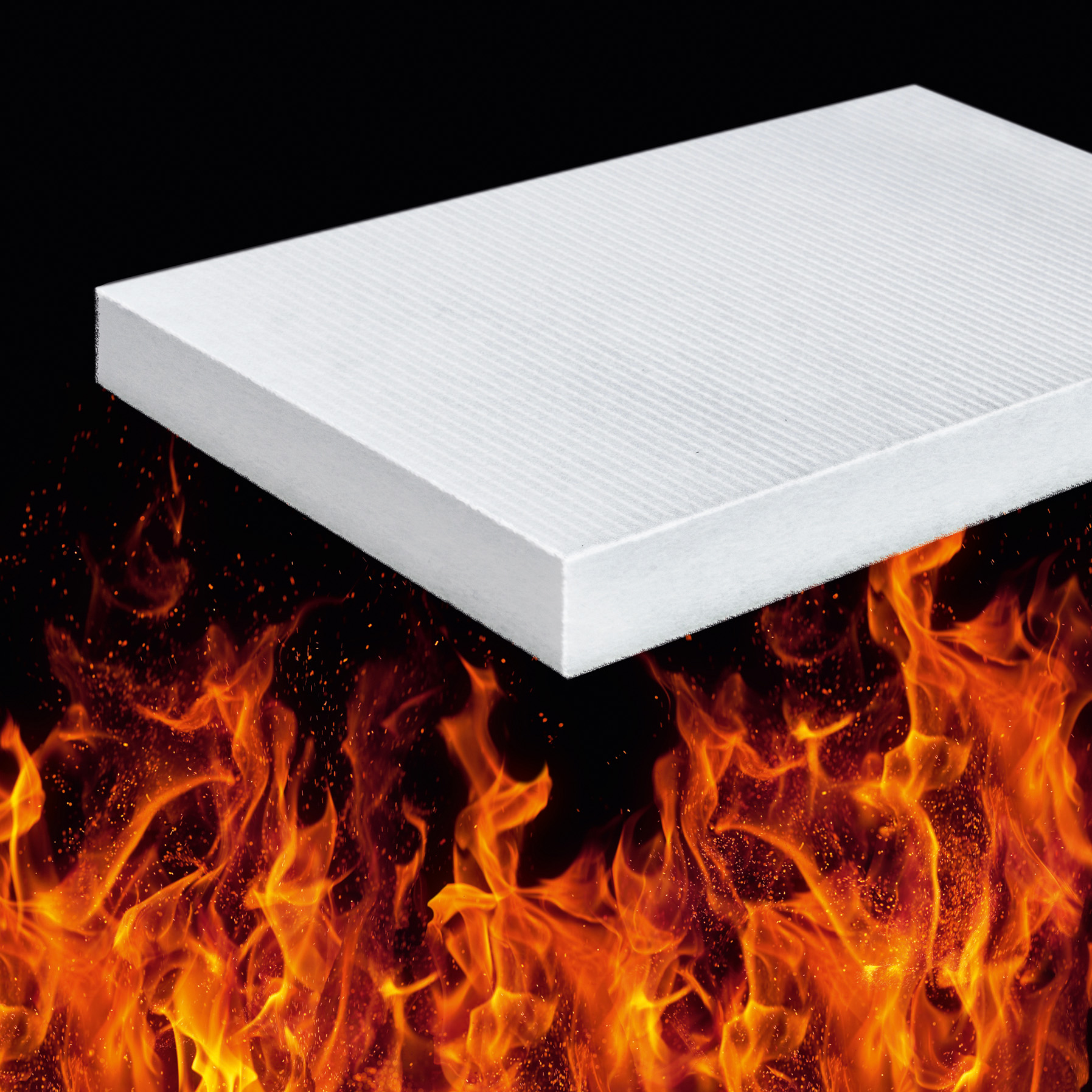 Für industrielle Anwendungen, bei denen neben exzellenter Schall- und Wärmedämmung auch zuverlässiger Brandschutz gefragt ist, präsentiert Hanno (Laatzen) jetzt sein neues „Fiber M“. Das innovative Vlies aus dem Hochleistungswerkstoff Melamin wird im Meltblown-Verfahren erzeugt: Dabei wird das Ausgangsmaterial geschmolzen und durch hohen Druck und Hitze in Vliesform gepresst. Das Resultat zeichnet sich durch hervorragende Produkteigenschaften aus: Es kann weder brennen noch schmelzen, schrumpft und tropft nicht und bleibt auch bei hohen Temperaturen formstabil – so erfüllt es selbst strengste Sicherheitsanforderungen. Zudem ist das leichte Vlies UV-beständig und chemisch hoch widerstandsfähig. Mit seiner Wärmeleitfähigkeit von 0,028 Wm/K ermöglicht „Fiber M“ dünnere Dämmschichtdicken als konventionelle Materialien und eignet sich optimal als thermischer und akustischer Isolator.