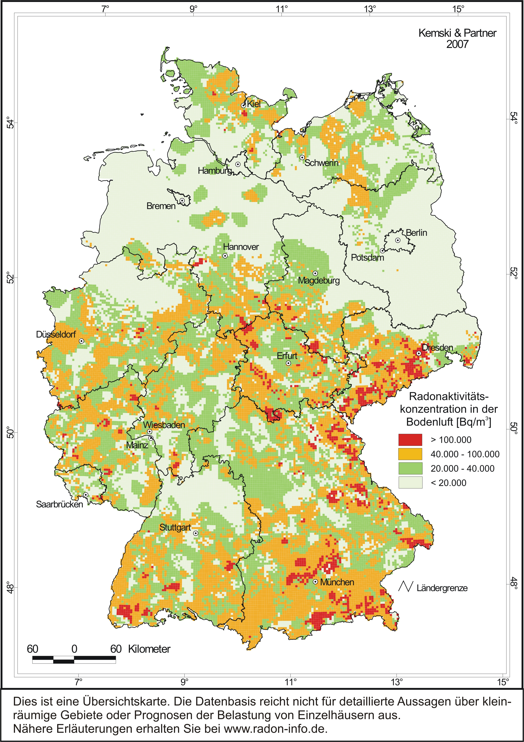 Radon ist ein natürliches Edelgas, das überall in der Umwelt vorkommt. In einigen Regionen Deutschlands überschreitet die Radon-Konzentration sogar den Referenzwert des deutschen Strahlenschutzes (300 Becquerel pro Kubikmeter). Es gelangt durch Gesteinsschichten aus dem Erdboden in Gebäude und kann sich dort anreichern. Da Radon ein schweres Gas ist, steigt die Konzentration vor allem in der Luft in Bodennähe, z.B. in Kellerräumen, aber auch in anderen Innenräumen. Einatmen von Radon ist bereits 1988 durch das Krebszentrum der WHO als ernstzunehmendes Krebsrisiko für den Menschen nachgewiesen worden. Vor den Gefahren durch Radon warnt auch das Bundesamt für Strahlenschutz (BfS). Daher sind vor allem in den Regionen mit hoher Belastung radondichte Bodenbeschichtungssystem zu empfehlen und in manchen Räumlichkeiten demnächst vorgeschrieben.